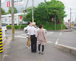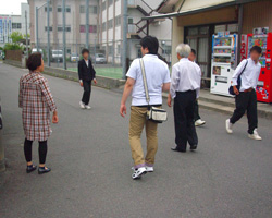 懐かしの通学路をたどってみよう!と、同窓会役員の高久篤史(52回生)がJR南四日市駅へ。中高6年間通い続けた学校までの道のりを久しぶりに歩きました。ご同行いただいたのは恩師である前田義信先生と、昭和30年代から学校近くにお住まいの用務員・中野清子さん。昔の様子なども伺いながらの楽しいウォーキングとなりました。